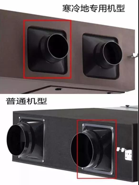 從法蘭位置可以看出來,寒冷地區(qū)專用機(jī)型在朝向室外那一側(cè)的保溫更厚