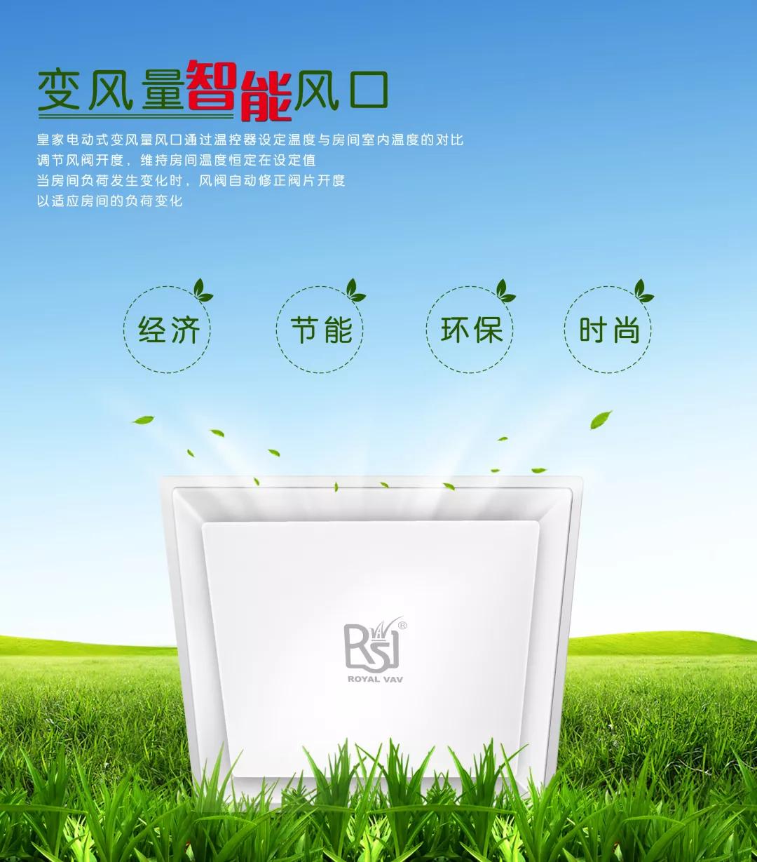 皇家電動(dòng)變風(fēng)量風(fēng)口只需要保證入口壓力穩(wěn)定,就可以通過感應(yīng)房間溫度自動(dòng)調(diào)節(jié)風(fēng)閥開度,滿足房間舒適度的控制要求。其解決了傳統(tǒng)變風(fēng)量系統(tǒng)中由于設(shè)計(jì)難度大,系統(tǒng)調(diào)試難,運(yùn)行維護(hù)專業(yè)要求高導(dǎo)致的運(yùn)行效果不理想的難題。并能夠的根據(jù)二次精裝房間的調(diào)整,靈活的滿足每個(gè)房間獨(dú)立控制的需求?;始译妱?dòng)變風(fēng)量風(fēng)口還能夠?qū)崿F(xiàn)遠(yuǎn)程控制的各類需求,并大大節(jié)省了空調(diào)系統(tǒng)在調(diào)試與運(yùn)行階段的時(shí)間與費(fèi)用,令變風(fēng)量系統(tǒng)更簡單,更可靠,更經(jīng)濟(jì),更靈活,更智慧。