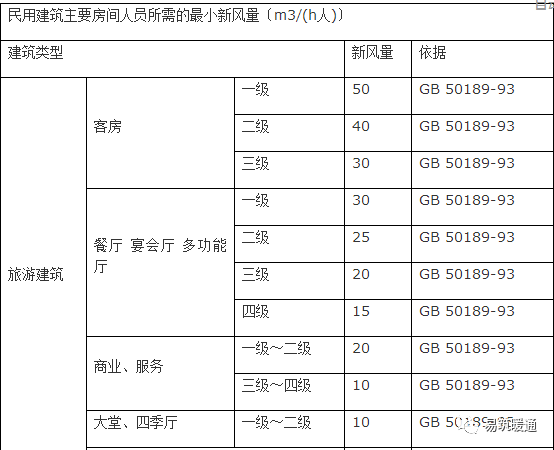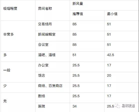 (2)人員所需新風(fēng)量應(yīng)滿足下表的要求,并根據(jù)人員的活動(dòng)和工作性質(zhì)以及在室內(nèi)的停留時(shí)間等因素確定。