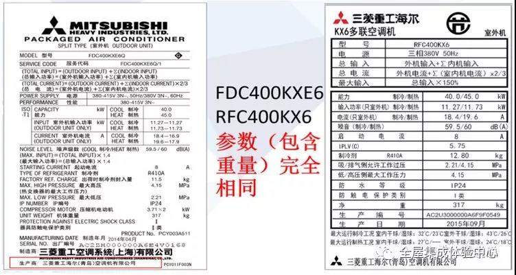 四、三菱重工中央空調(diào)和三菱重工海爾空調(diào)銘牌標(biāo)識各項參數(shù)數(shù)據(jù)完全一樣!