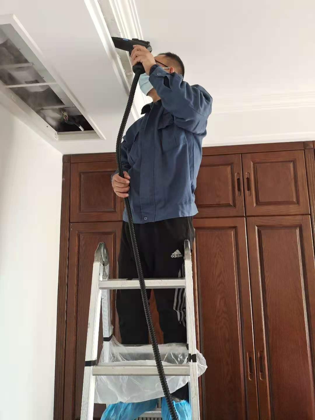圖為:三菱重工海爾的師傅們正在為養(yǎng)老院餐廳的中央空調、臥室的中央空調進行高溫殺菌清洗。不洗不知道,清洗完一看水才發(fā)現(xiàn),原來我們的空調才一年未清洗就已經(jīng)這么臟了,看來每年的中央空調清洗還是非常有必要的!