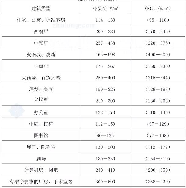 一般情況下, 辦公樓、 寫字間、 客房負(fù)荷可以按照約 90~100 大卡每平方米, 會議室、 影劇院、 演播大廳約 160~200 大卡每平方米, 酒店、 洗浴、 餐廳 160~260 大卡每平方米計(jì)算。